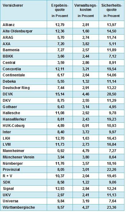 Die so definierte Ergebnisqoute ermöglicht eine zusammenfassende Betrachtung der Schaden-Kosten-Situation eines Versicherers; sie sollte möglichst über 5,0 Prozent liegen.